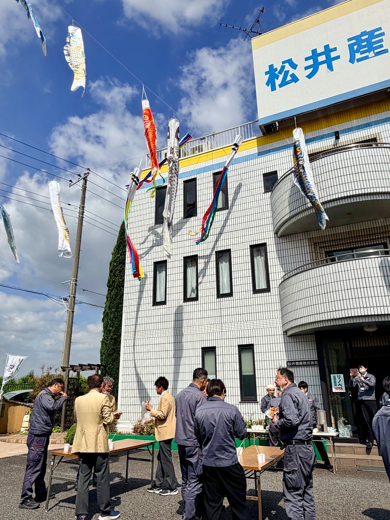お天気にも恵まれ、外にテーブルを出しての朝食タイム。 風にたなびく鯉のぼりに見守られながら、役職や部署の垣根を越えて、みんなで「おいしいね!」と頬張ります。楽しい会話が飛び交うこの時間は、私たちの大切なコミュニケーションの場。 しっかり食べて、心もお腹も満たされて、今日も一日元気にスタートです!