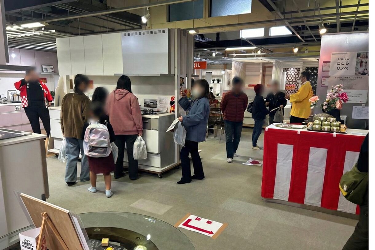 会場では、熱々の焼き鳥や焼きそば、豚汁などの屋台、お子様に大人気のスタンプラリーや輪投げ、お菓子のつかみ取り、最新リフォーム設備の展示などを行い、小さなお子様から大人の方まで、笑顔溢れる一日となりました。特に屋外の飲食スペースや、室内の展示コーナーも大盛況で、地域の皆様と直接ふれあえる貴重な時間を過ごすことができました。
